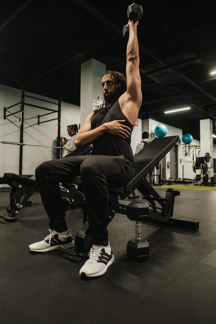 The dumbbell overhead press is an excellent exercise for targeting your shoulders, but it also engages your core muscles to maintain stability.