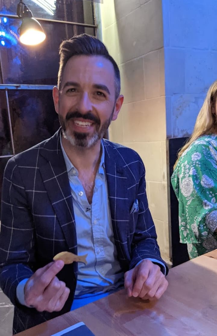 A sliver of oyster loaf with foam. David’s face here says more than I ever can.