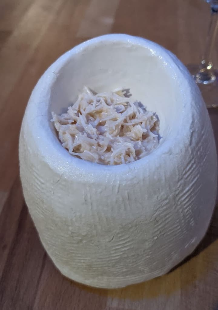 I’ve added the bread plate for scale. This was the largest course of the 27 (We got six noodles and one piece of bread each.)
