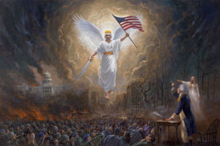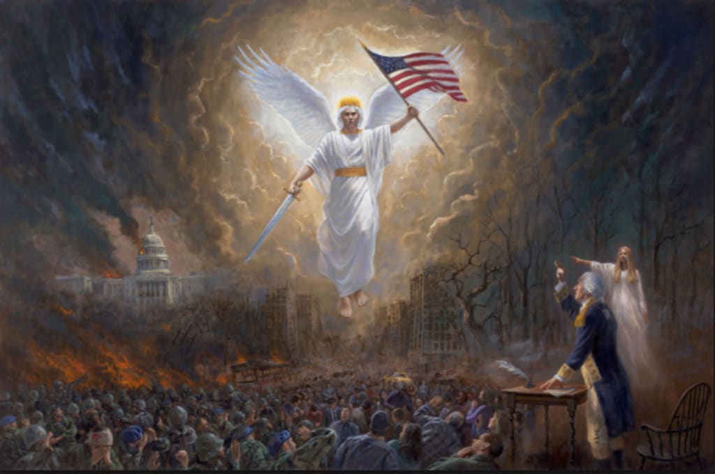 Washington then says that the angel, "Fled down to Earth and joined the inhabitants of America."