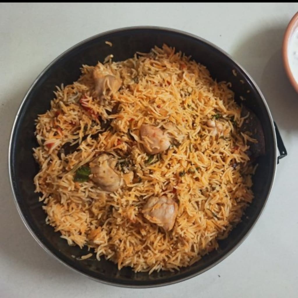 13. Your South Indian chicken biriyani is now ready to serve! Enjoy it hot with raita or any side dish of your choice.