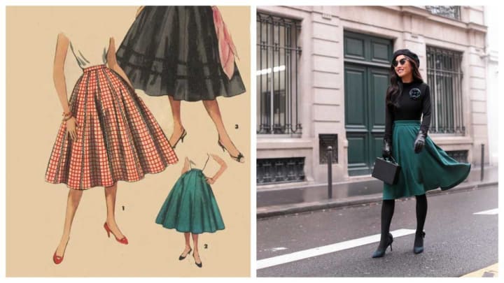 Circle skirts were a prim lady's style staple in the 1950s. Not much has changed these days as modern-day gals are still rocking this classic piece but updating it with a more modern edge by adding cute, current accents like a fun felt beret and cool leather accessories.
