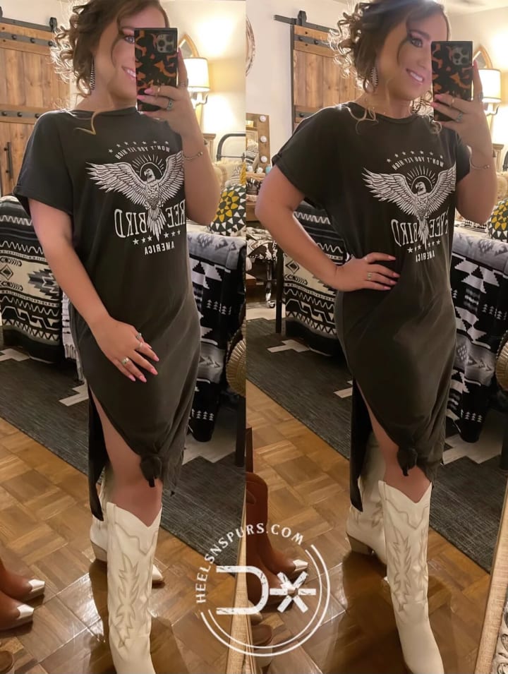 You can choose a free western bird print t-shirt dress for the best of both worlds - fashion and comfort. The perfect combination of natural color palette and the cute bird picture gives it an extra oomph! Adding some sparkly jewelry and heeled boots can amp up your OOTD, and you'll be ready to rock Easter Sunday with your stylish t-shirt dress!