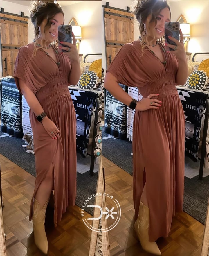 Feminine maxi dresses are a must-have in any wardrobe, and they can be dressed up or down to suit any occasion. This Easter, you can look absolutely stunning with a slit maxi dress! With its beautiful mauve color and intricate detailing, this piece will make all eyes turn toward you instantly.