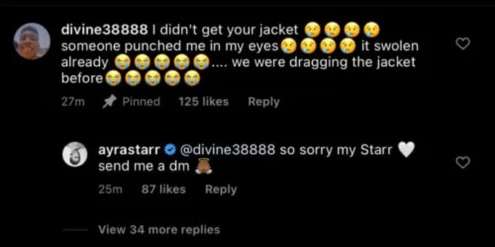 There's nothing wrong about Ayra Starr's blue jacket, it is a nice jacket. The problem came when during a performance at UNIBEN, she decided to throw this jacket into the crowd. This jacket caused a fight. One person by the name of Divine actually got punched in the eyes because of the jacket. According to him, "I didn't get your jacket. Someone punched me in my eyes. It swolen already. We were dragging the jacket before."