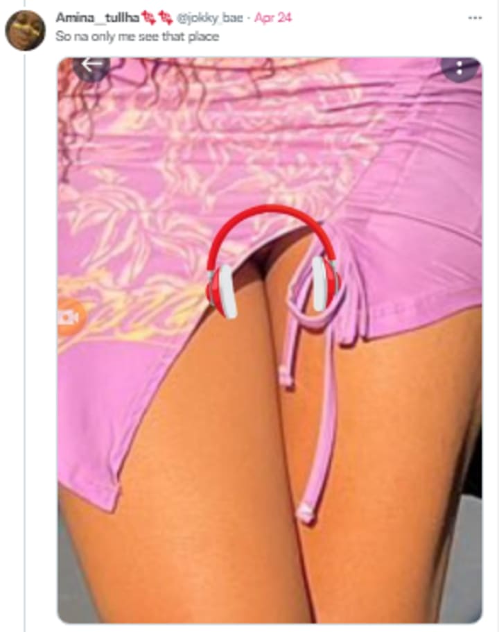 On first look of this outfit, I didn't see anything wrong and even now looking at, I think it's a beautiful outfit. But people on the internet did not think so at all! First of all, somebody zoomed into the picture and said: "So na only me see that place"