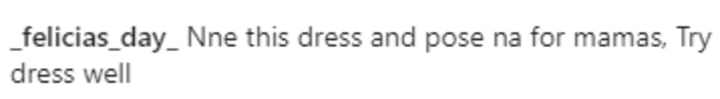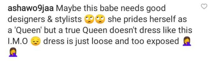 When Erica posted this set of pictures wearing this outfit with a deep plunging neckline that showed off a lot of cleavage, as you can imagine, the images were mixed reactions. At its worst one user said about the dress, "Maybe this babe needs good designers & stylists, she prides herself as a 'Queen' but a true Queen doesn't dress like this I.M.O. dress is just loose and too exposed" amidst more.