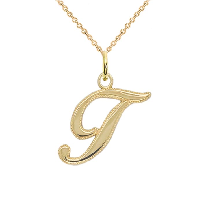 2. Personalized Cursive-Style Letter Letter “T” Initial Pendant/Necklace in Solid Gold