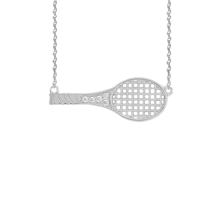 6. Sideways Tennis Racket Diamond Sports Necklace in Gold