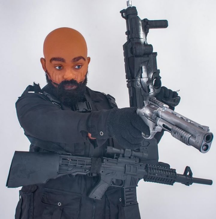 Although Mercy Aigbe didn't dress up on the day of Halloween, the popular Nollywood actress took to Instagram to post some never-before-seen pictures from her upcoming project titled J.B.O. In the pictures, Mercy can be seen wearing some very interesting costumes. With scars on her face, a machine gun in some pictures, and a thick beard, Mercy Aigbe is unrecognisable in these pictures and a lot of her fans have dubbed this one of the best Halloween looks of 2020.
