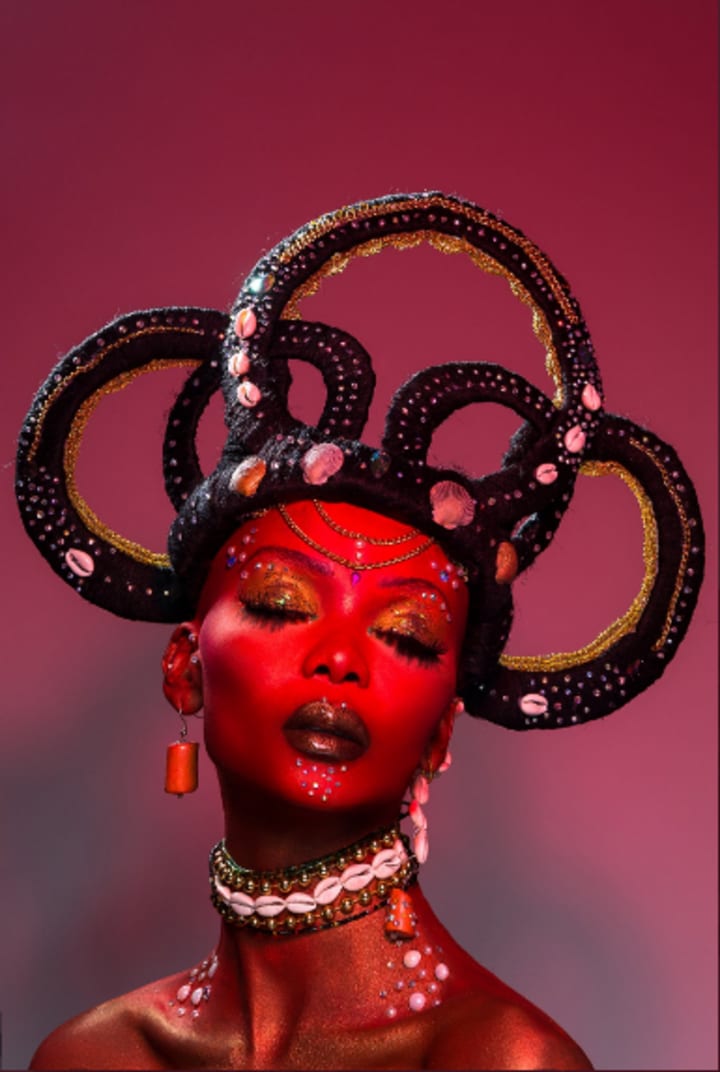 Beauty director and make-up artiste for Halloween painted and designed this model as Òrìsà: Osun. It is the one picture that I saw while scrolling on social media that really made me stop and say I had to share this with you guys.