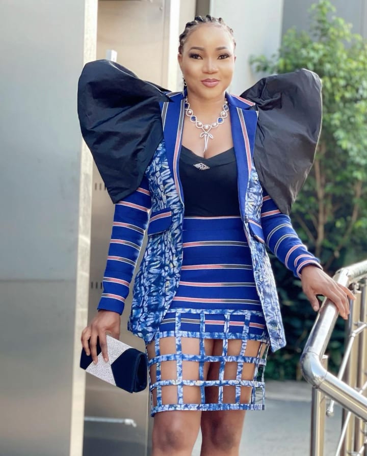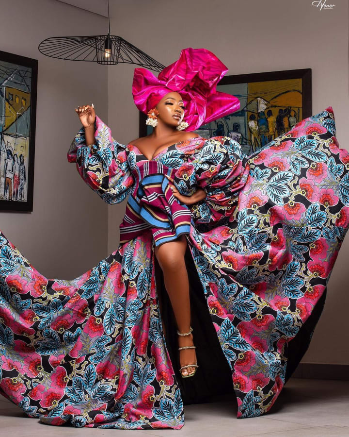 Model and actress Osas Ighodaro is and has always been known as a fashion stunner. For her Ayinla look, she once again did not disappoint...well, to me. Some people on social media said that the outfit had too much going on and that the colors didn't blend with the grey of the gown. But I want to know, what do YOU think?