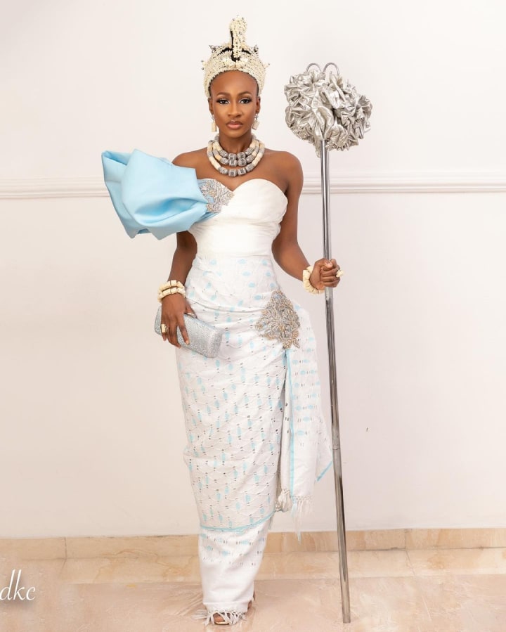 Big Brother Naija housemate Anto made quite the statement with her bold white and blue look complete with a flower staff. The look to me is clean, simple, and eye-catching but as always, there was the crowd of people who didn't think it was all that. I'm interested to know - what do YOU think?