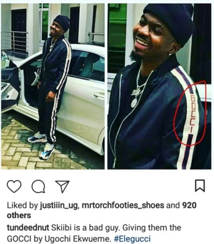 Tunde Ednut posted the picture, zoomed into the “Gocci” tag and captioned the picture: