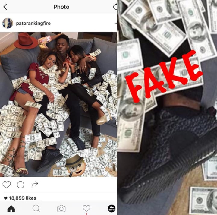 Singer Patoranking once posted a very lavish picture of himself sleeping on a couch with two girls surrounded by an obscene amount of money sprayed around him.