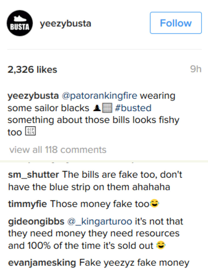 Very quickly after posting the very expensive picture, the singer was called out for wearing Fake Yeezy shoes by a page dedicated to spotting fake Yeezy shoes called ‘yeezybusta’.