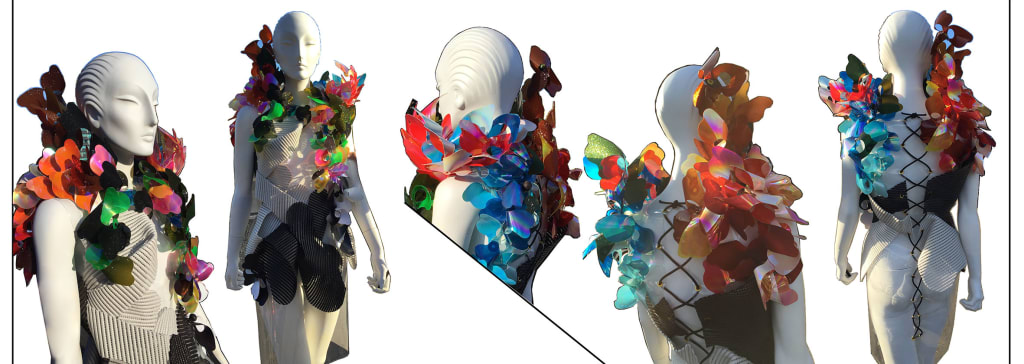 Sometimes, it was not intellectual but more organic. I found this often when actually draping or through cut and play. Taking scraps of fabric and pinning them to a form, seeing what the fabric would allow me to do and then cutting into it, to force it beyond its movement into something new. This is where I learned to execute my ideas from thought and paper into something three dimensional - where you could walk around it and embrace your sense of touch and scale. If you stopped here though the piece is only conceptual, pinned together without functionality. As an artist with a background in painting and illustration this would be enough for me, a single concept more like an art installation for enjoyments sake.