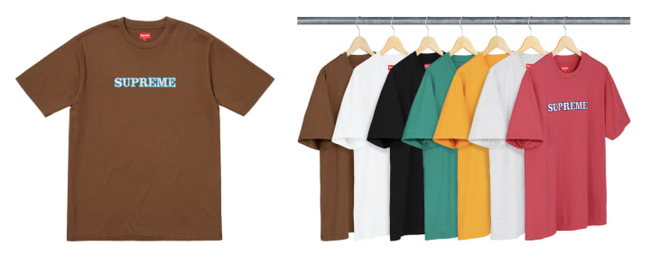 For the same reason as the box logo, this tee is likely to be a hit with buyers because of its obvious supreme branding along with the range of staple colours it comes in. Trying to cop a Supreme t-shirt on release is one of the easiest ways to bag yourself a Supreme item, with retail likely to be around £40. This tee could be a perfect item to start your streetwear collection. In addition to this, the floral tee will be available in seven different colours: brown, white, black, green, yellow, grey, and pink. White is likely to be the most popular colour based upon the ability to easily pair white with almost any other item of clothing. However, my favourite is the black. Again, black can be matched with a wide range of clothing, but in my opinion the contrast between the white and blue supreme logo and the black material will make the tee stand out even more. I will be looking forward to the week when this item drops.