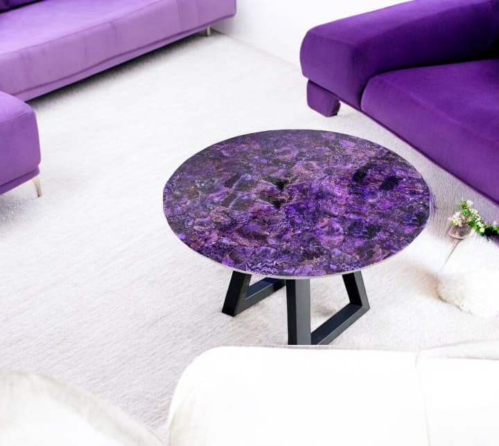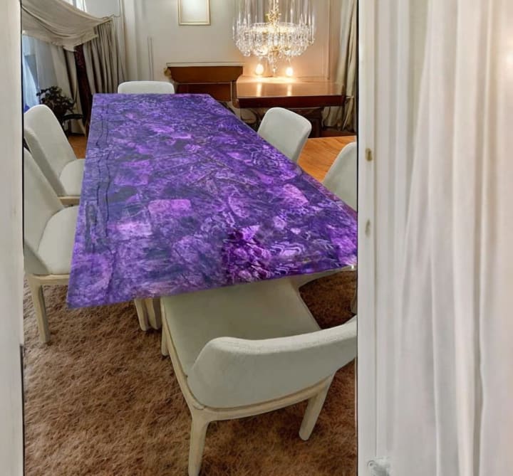 An amethyst table is more than just furniture—it's a masterpiece. These tables are crafted using slabs of amethyst, a stunning purple quartz crystal known for its vibrant color and natural beauty. The unique interplay of shades and patterns makes every table a one-of-a-kind creation, blending nature and functionality seamlessly.