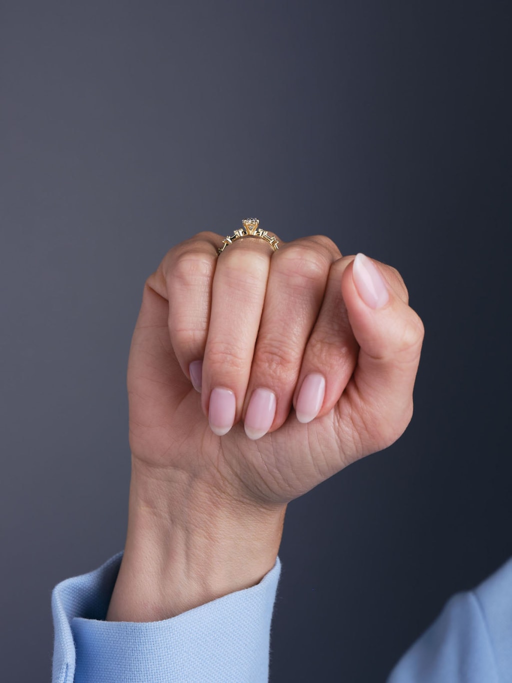 When wearing an oval diamond, try to keep your other accessories minimal. A pair of small gold hoops or a simple silk scarf is all you need. Let the brilliance of the 1ct oval diamond ring be the focal point of your outfit.