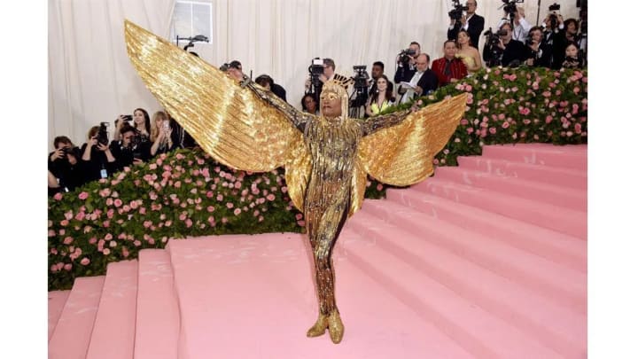 More recently though, a handful of celebrities have taken it upon themselves to bring some drama back to the red carpet – most notably, Pose star Billy Porter. The actor has become known for his elaborate red-carpet get-ups – such as a bejewelled catsuit with 10ft-high wings at the Met Gala (where he was carried in by six shirtless men). At the 2019 Oscars, he grabbed attention with a full-skirted Christian Siriano tuxedo gown and, last year, a bespoke gold and printed Giles Deacon creation inspired by Kensington Palace.