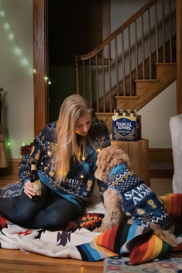 "He sees you when you’re sleeping, he knows when you’re awake. No, not the gift giver - your dog. Your dog sees everything, including those weekday beers you promised you would be drinking less of. It’s time to make them more supportive, and our Sam Adams Dog Sweater gets them in on the fun! With a dark blue knit and a snowflake print reminiscent of the perfect snowfall, your furry friend will know it’s soon time for a chilly w-a-l-k. With his natural and man-made winter coat, nothing stands between them and their leash! Who’s Sam Adams, anyway? Hope he brought treats."