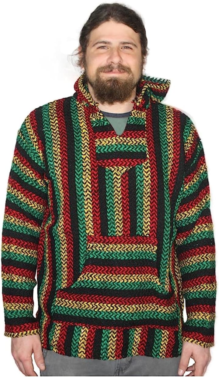 Embrace the authenticity, sustainability, and style of the ÖLAND OUTDOORS Rasta Baja Hoodie Hippie Mexican Poncho and experience the comfort and cultural richness it brings. Whether you're a surfer, a yoga enthusiast, or a traveler seeking unique and ethical fashion, this hoodie is a true representation of organic knitwear craftsmanship and a testament to Mexican heritage.