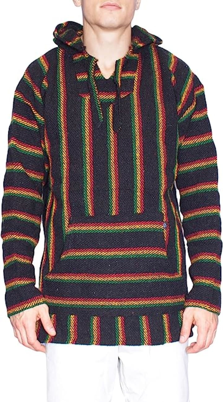 3. Baja Joe Eco-Friendly Woven Striped Pullover Rasta Baja Hoodie