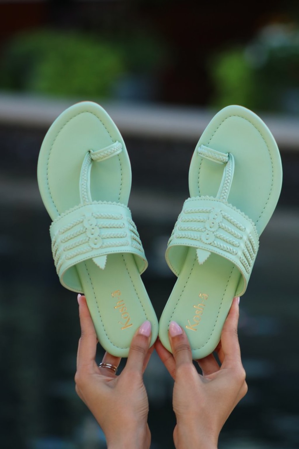 Step into the world of mint green sandals and experience a breath of fresh fashion. The delicate and soft shade of mint green adds a subtle pop of color to your ensemble, making it a delightful choice for both casual outings and more sophisticated events. Mint green flat sandals exude a sense of tranquility, capturing the essence of nature's serenity right at your feet. Crafted with utmost care and precision, these sandals not only pamper your feet but also elevate your style quotient.
