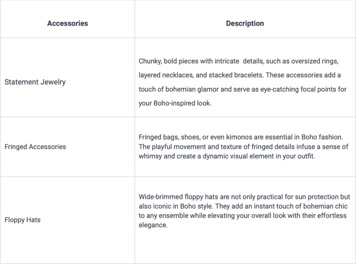 Incorporating key elements of Boho statement pieces, accessorizing with statement jewelry, fringed accessories, and floppy hats, and incorporating playful Boho patterns and prints will bring the charm and creativity of Boho fashion into your wardrobe. Experiment, have fun, and let your Boho-Minimalist fusion style speak volumes about your fashion-forward mindset.