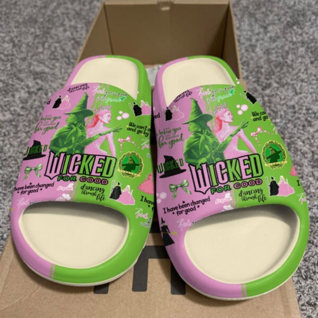 Don't miss your chance to get these magical and comfortable slides. Feel the magic of "Wicked," celebrate the strength of being changed "For Good," and step into your day with unshakeable style and comfort.