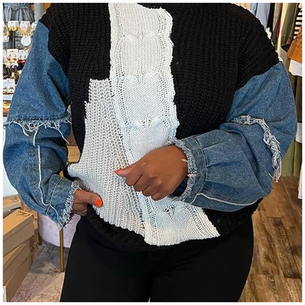 Fall fashion this year is all about embracing sophisticated yet affordable looks, with a focus on elegant layers, rich colors, and fun silhouettes. For women, sweaters are a key piece, offering a perfect balance of comfort and style. Chunky knits, and oversized cardigans are trending, with fabrics like wool and knit leading the way. The sweater above is very Casual Patchwork with Denim Long Sleeve. It is very Fashionable Trendy top with Color Block.