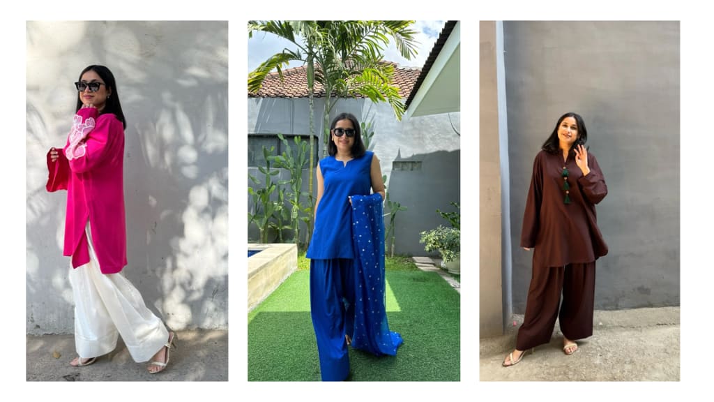Let’s take a closer look at three beautifully crafted farshi salwar sets from Pyoor that can redefine your office wardrobe.
