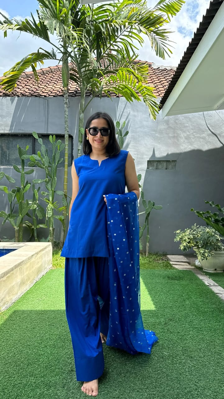 Dark colors always have a special place in professional settings, and the Midnight Blue Set in Pakistani fit is a standout. Designed for the confident woman, this cotton farshi salwar suit features a rich navy blue kurta paired with a flowy farshi salwar, offering both elegance and ease.