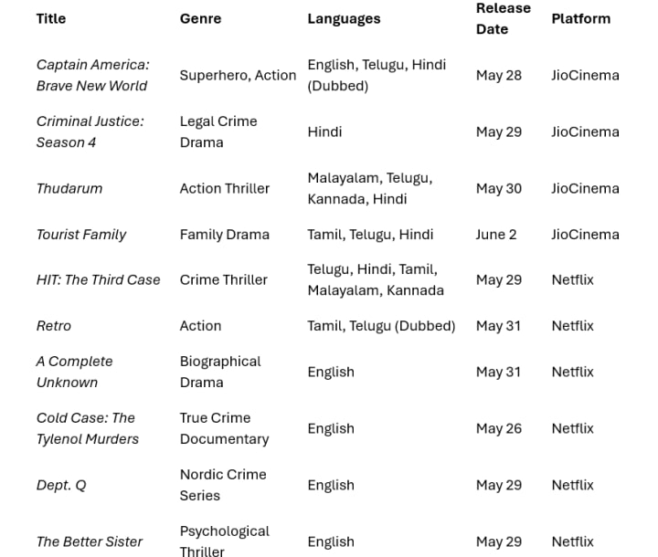 Whether you're in the mood for the pulse-pounding energy of Marvel heroes, the procedural depth of crime dramas, or emotionally resonant family sagas, this week’s OTT lineup has something for every palate. Platforms like Netflix and JioCinema are proving once again that premium content is just a click away.
