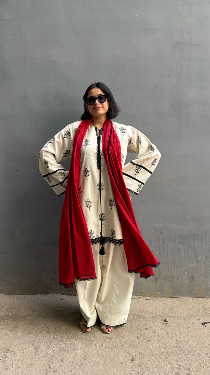 Summer wardrobes demand breathable and soft fabrics, and the farshi salwar set answers that need gracefully. Pyoor’s Mira Farshi Salwar Suit Set is a beautiful example of comfort meeting style. Crafted in soft embroidered cotton, the fabric feels light against the skin and moves with you throughout the day. The oversized kurta and wide farshi salwar offer a generous fit, allowing airflow and flexibility without compromising on elegance.