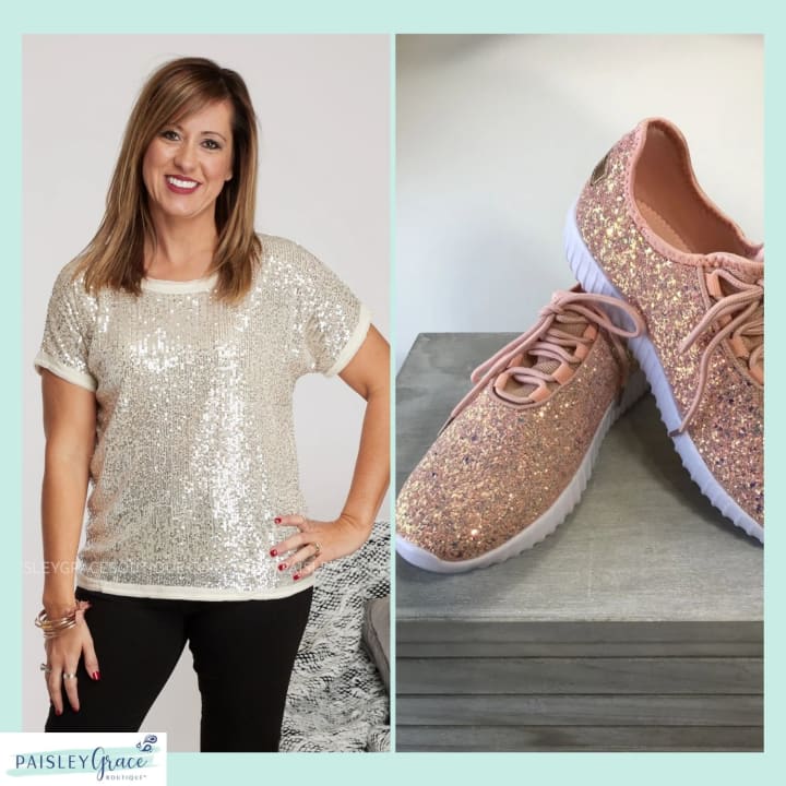 Sequin top with starstruck sneakers