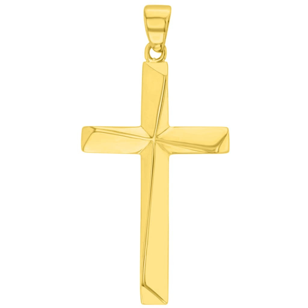 High Polish 14K Two-Tone Gold Large Cross Catholic Crucifix Pendant Necklace