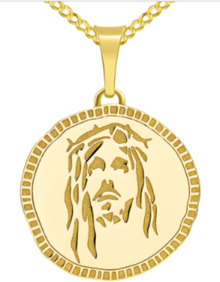 The Jesus Christ medallion pendant is one of our best-selling Catholic men’s products, and features an intricate handiwork of Jesus Christ’s face on solid 14k gold. The necklace is handcrafted with the utmost care, and features a Cuban chain with an engraved gold medallion.