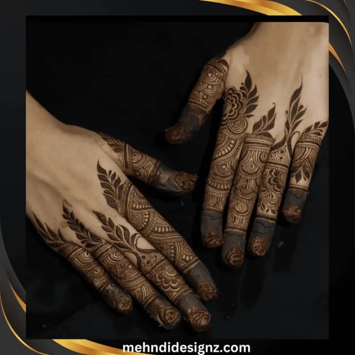 Tiny leaves and vines winding around your fingers add a natural, organic feel to your Mehndi.