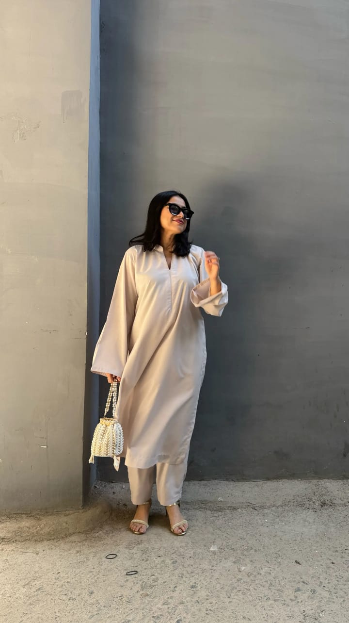 Take Pyoor’s Solids Kurta Coord Set in Ivory Beige Oversized Fit. Made from soft Bizzy Lizzy cotton, this set is designed for ultimate comfort. Its oversized fit, inspired by Middle Eastern fashion, brings flow and function together. The ivory beige hue adds an elegant softness, suitable for both casual strolls and evening get-togethers. Those searching pakistani kurti set selections that prioritize longevity without compromising style will find this an ideal choice.