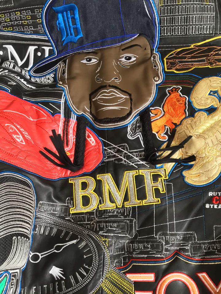 I purchased this jacket because Al had outdone himself once again on this one. Al honored “Big Meech” as he should have because of what he and his younger brother “Southwest T” mean to the black community of Detroit that’s why I had absolutely no problem with the price of this edition. Every colors pops and so does every stitch on the colorful masterpiece of a jacket. I have people ask me all the time how much does it cost and I just smile. I think is tacky to boast about price to people that are having difficult times financially I just stay if you buy one just make sure you can afford at least five of them. I even got the chance to chop it up with “Al Wissam” himself and the great brother “Southwest T” when I bought the jacket. When I met them that it felt like a great moment in history to me two people I’ve wanted to meet since I’ve been an adult.