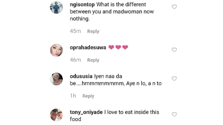 Some fans called her a "disgrace" telling her to "learn from Genny, Omotola, and d rest" while others praised her calling her "beautiful".