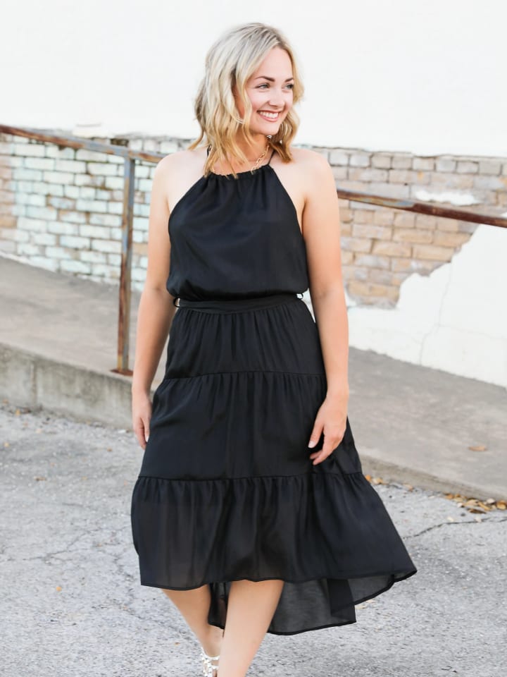 Every mother needs a little black dress in her wardrobe. It's versatile, timeless, and can be styled up or down, depending on the occasion. The layer detailing adds a touch of femininity, while the black color keeps it classic.