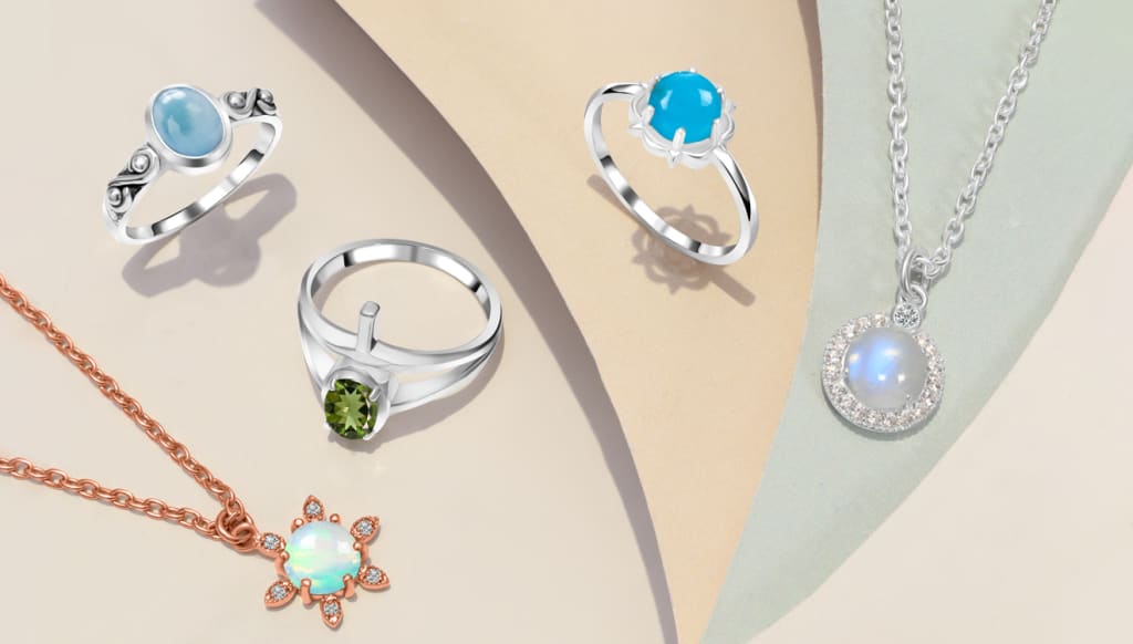 The classic and fashion-forward gemstone jewelry is consistently among the top trends and always adds style to the wearer's personality. To give an ultra look, this gemstone jewelry could be a perfect fit. Pieces featuring gems like Larimar, Moonstone, Turquoise, Opal, and Moldavite are all trending, so this season's gemstone jewelry comes in colors of the rainbow. These stones are an excellent choice for daily wear as well as for party wear, adding the chic element to the look of the wearer. Let us talk in detail about these stones.