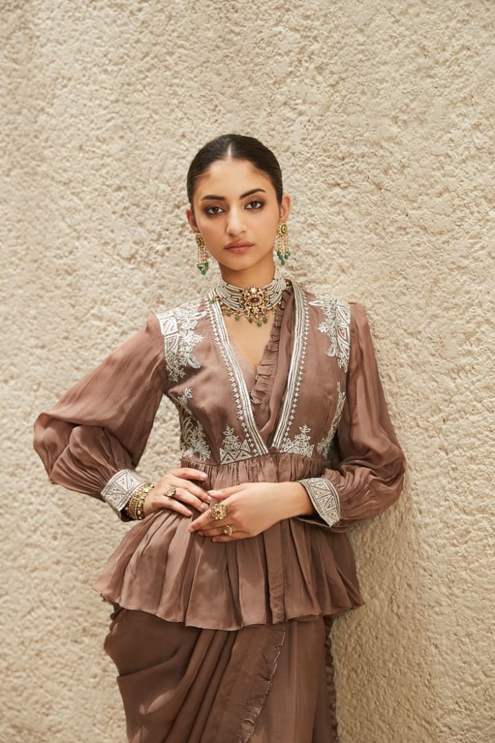 For a fusion twist, a peplum collar blouse can be paired with sarees or lehengas. It cinches at the waist, giving a structured and stylish silhouette. Perfect for sangeets, receptions, or cocktail parties, this design effortlessly merges contemporary style with ethnic charm.