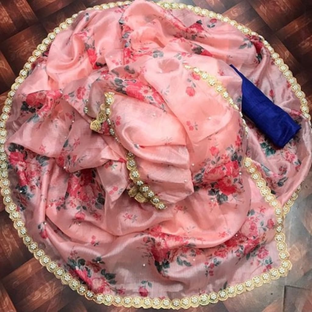 Floral Print Organza Sarees are named from their looks, where the saree is printed entirely with various originator prints, alongside different tones used to carry all the more pop to the look. Printed organza saris have exceptionally straightforward and excessive plans. There can be blossoms, roses, leaves, tree limbs, and numerous other extraordinary plans. This sort of style and configuration is generally made for relaxed or regular wear.