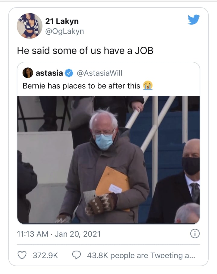 While Bernie's hopes of becoming President faltered, he still managed to stand in the spotlight on Inauguration day.
