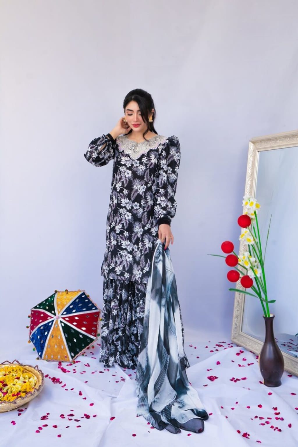 The garara holds a special place in the hearts of women and girls, as it embodies a perfect blend of tradition and modernity. With its flared silhouette and intricate embellishments, the garara exudes elegance and sophistication. The flowing fabric and delicate craftsmanship make it a go-to choose for special occasions, including weddings, festivals, and cultural celebrations. The garara is a versatile garment, available in various styles such as garara kurtis, kurtas, and frocks, each offering a unique interpretation of this timeless attire. The garara not only enhances the beauty of the wearer but also instills a sense of confidence and grace.