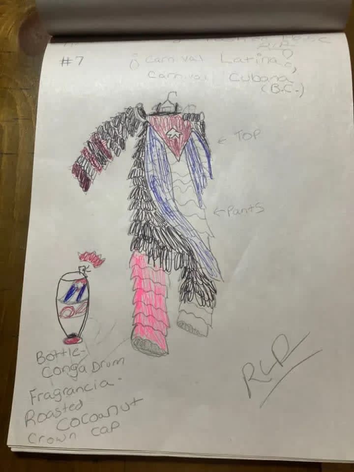 There is a gown in my collection called Musica Latina it is inspired by Cuba B.C. which stands for Before Castro. Another piece is a ruffle piece inspired by the things singers wear that look like that with a Cuban flag draped over it.